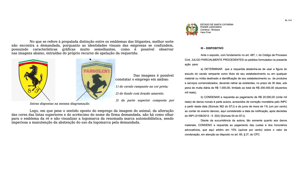 Eles usavam um escudo muito parecido com o famoso cavalinho preto da Ferrari – o Tribunal de Justiça de Santa Catarina entendeu que, mesmo sem intenção explícita de imitar, o uso recorrente e não autorizado do símbolo configurava infração.